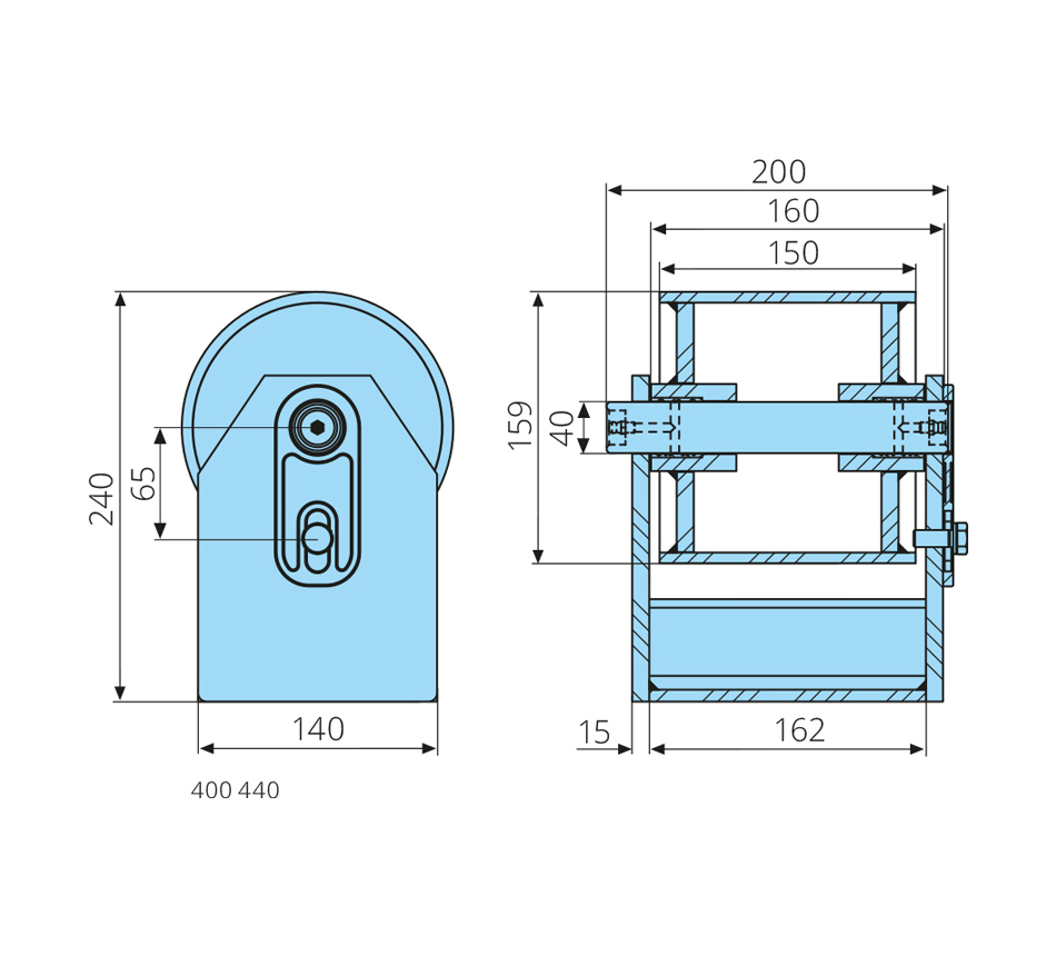 40-159-150/160mm, H=240mm, Achsschmierung, Messingbuchse