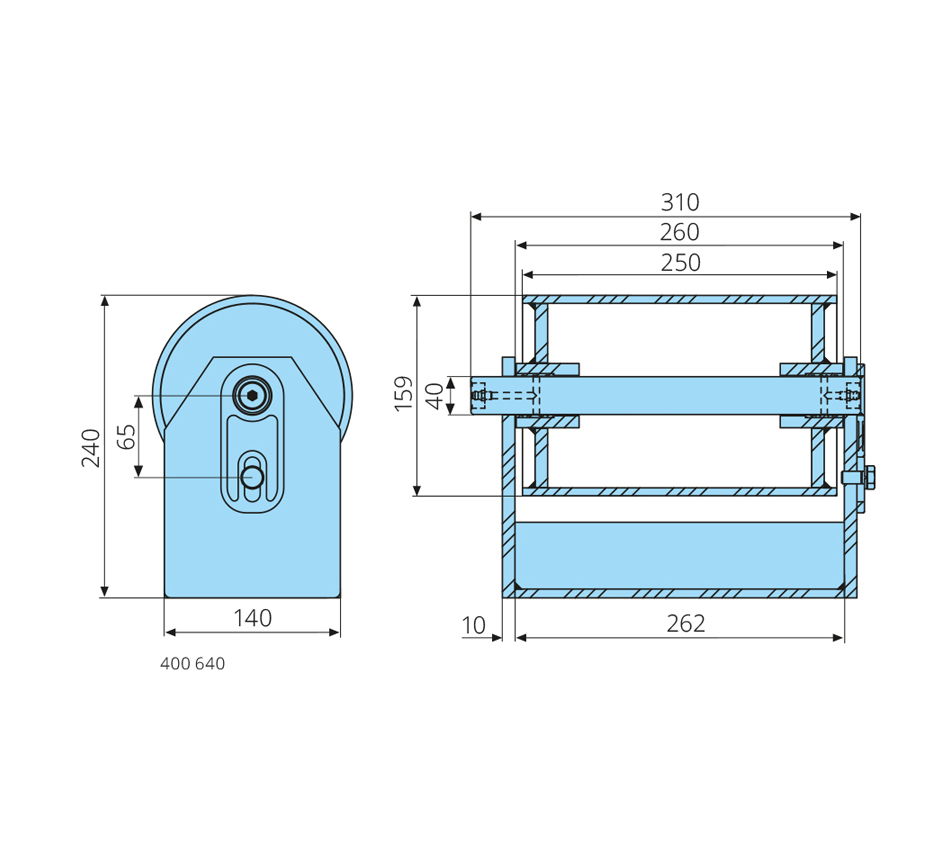 40-159-250/260mm, H=240mm, Achsschmierung, Messingbuchse