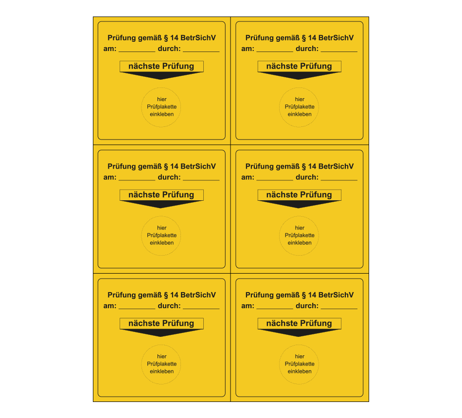 Autocollant de base PVC Contrôle selon § 14 BetrSichV105x95mm, 6 pièces/feuille