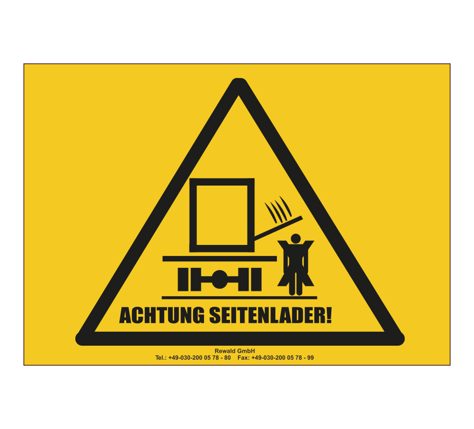Autocollant PVC "Attention chargeur latéral !"850x600mm