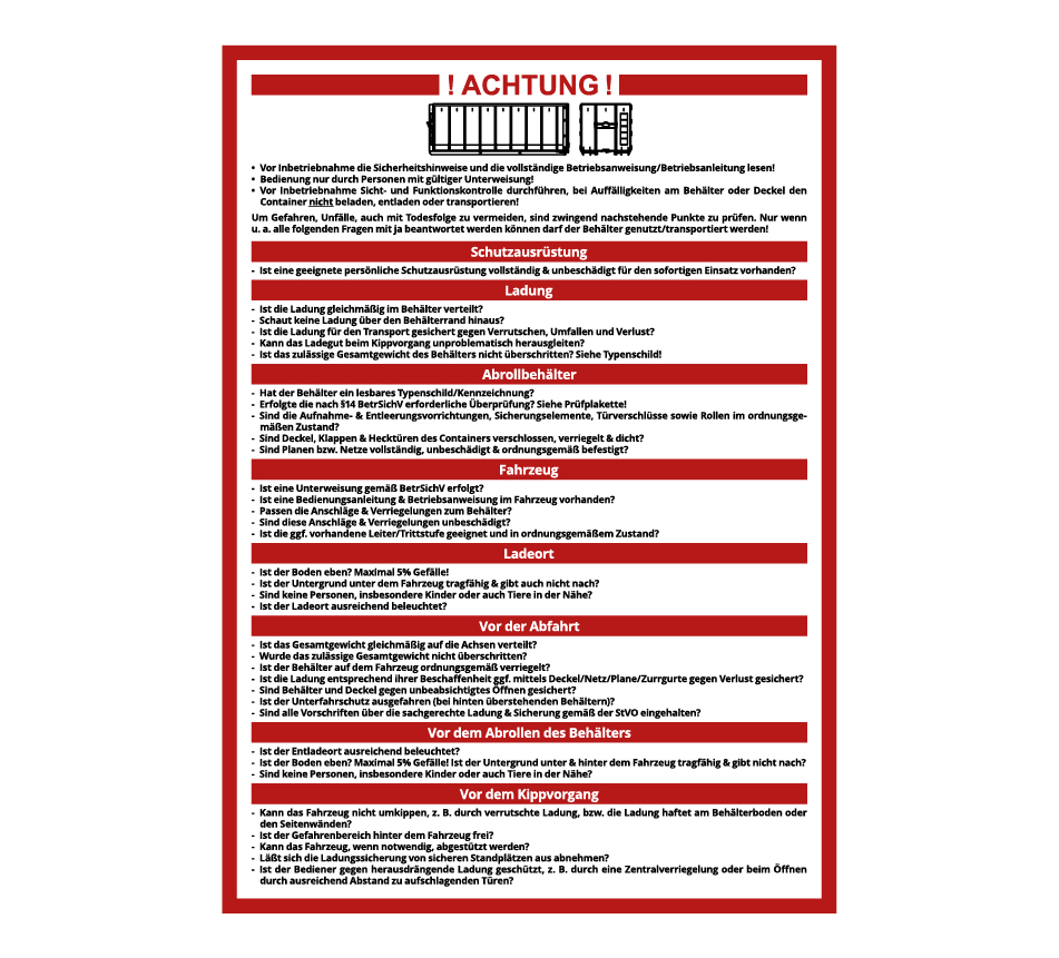 Autocollant PVC "Avertissements pour bennes amovibles"210x297mm