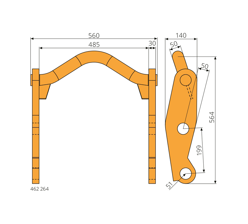 Axe de préhension rabatable50x560mm, S355J2+N, entraxe des trous 199mm, apprêté, type HUSMANN