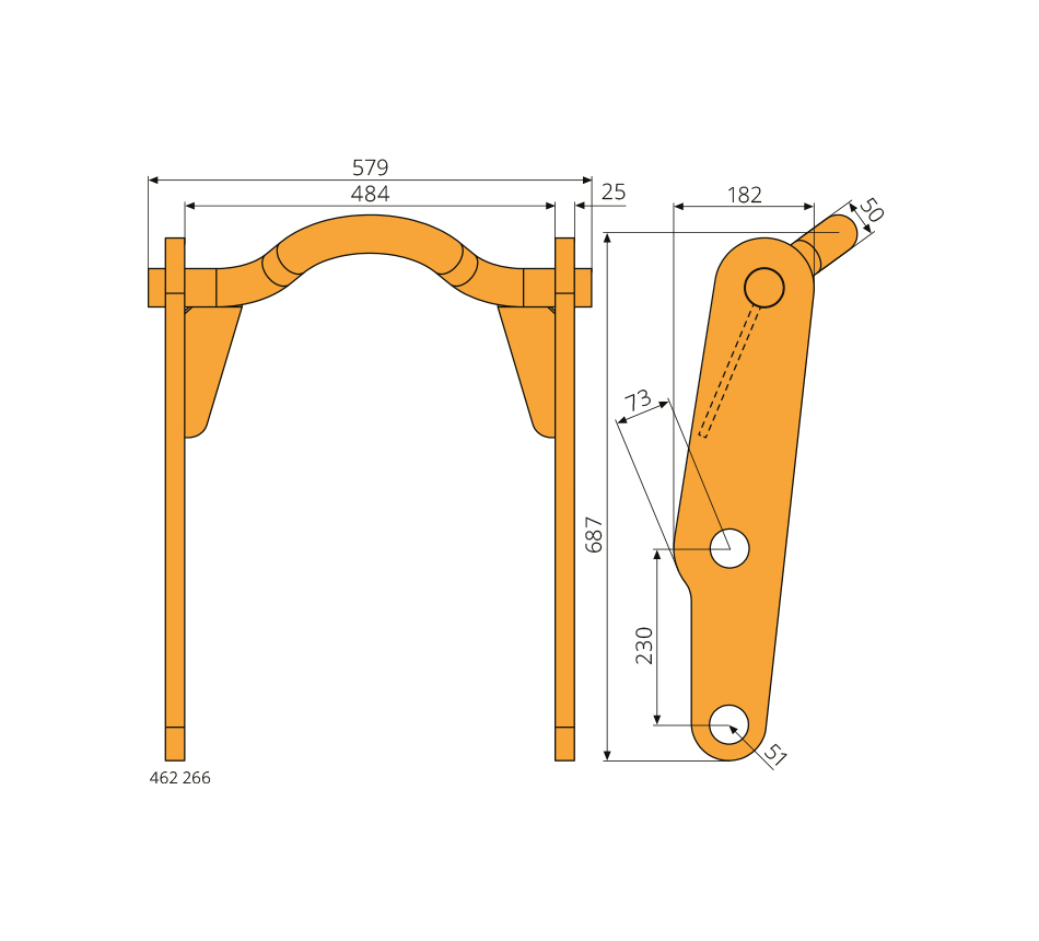 Axe de préhension rabatable50x579mm, S355J2+N, entraxe des trous 230mm, type HUSMANN