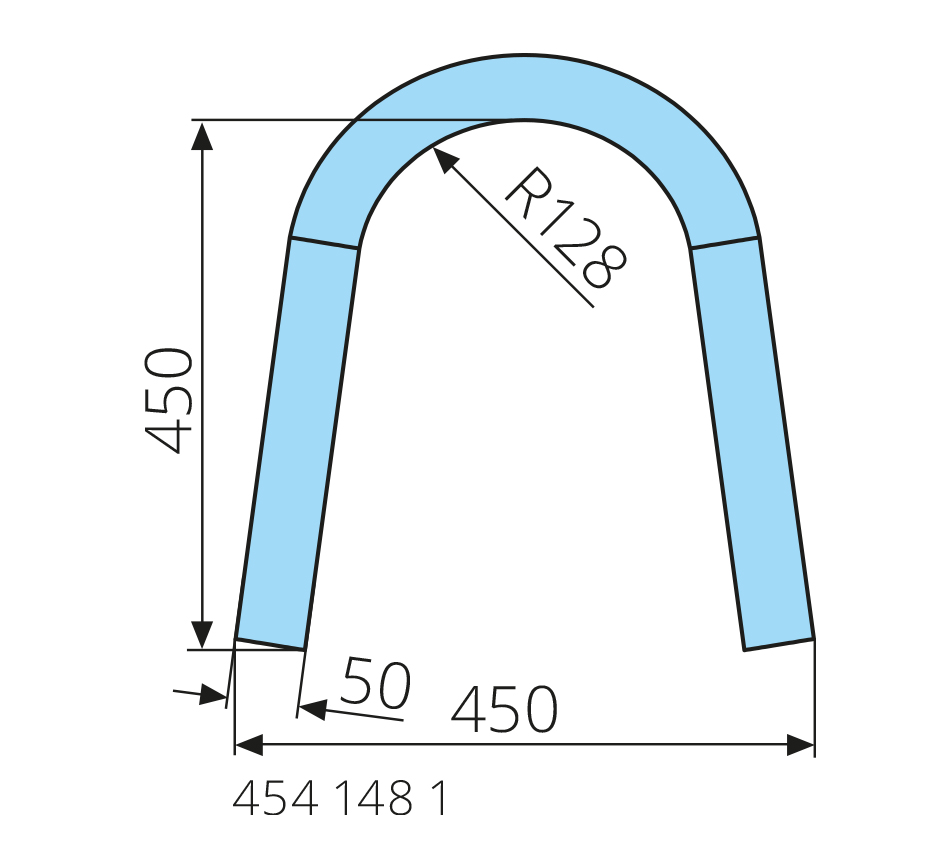 Axe de préhension50x450x450mm, R128, déformé à froid, S355J2+N