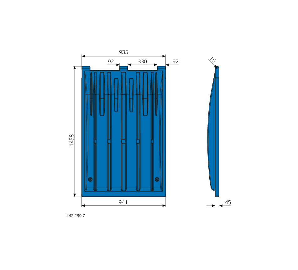 941x1458mm, plastic, light blue (similar to RAL 5015)