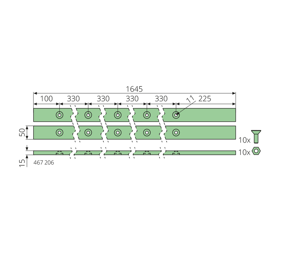 50x15x1645mm, 42CrMo4, 2 parts, with screws & nuts, type PAAL