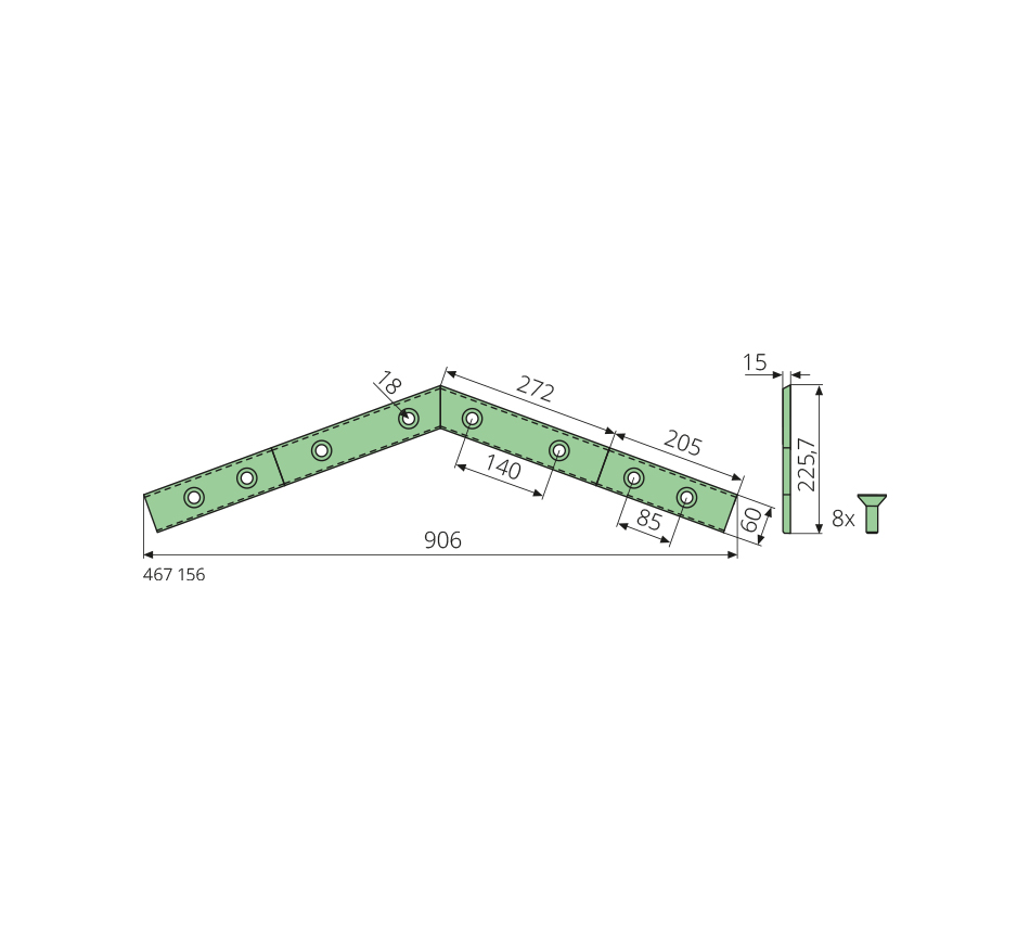 15x906x126,5mm, X155CrVMo 12-1, à quatre éléments, avec visserie, type PAAL