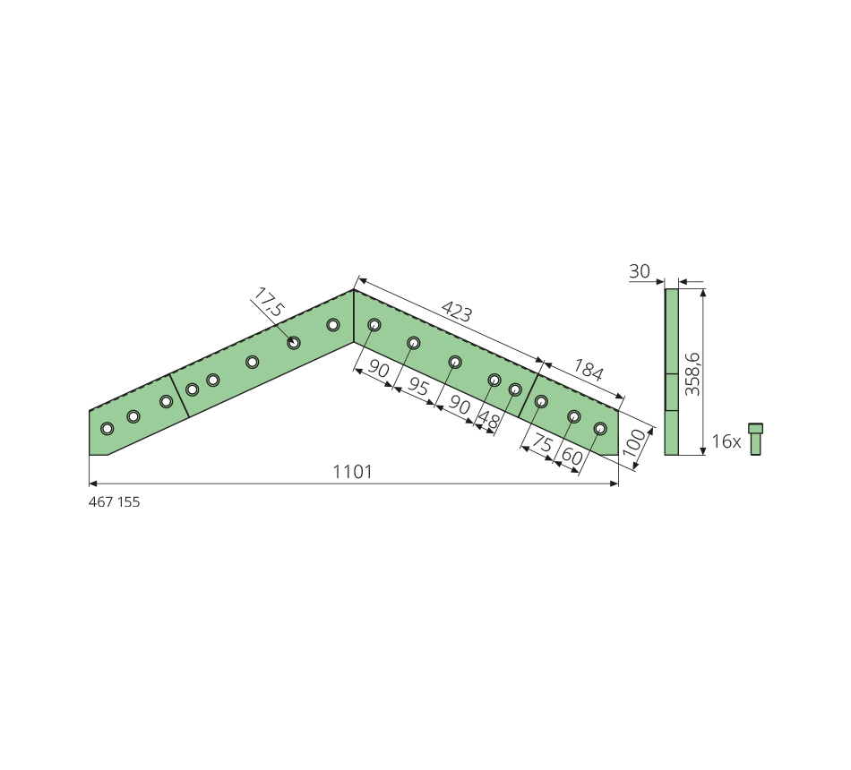 30x1101x358,6mm, X155CrVMo 12-1, à quatre éléments, avec visserie, type PAAL