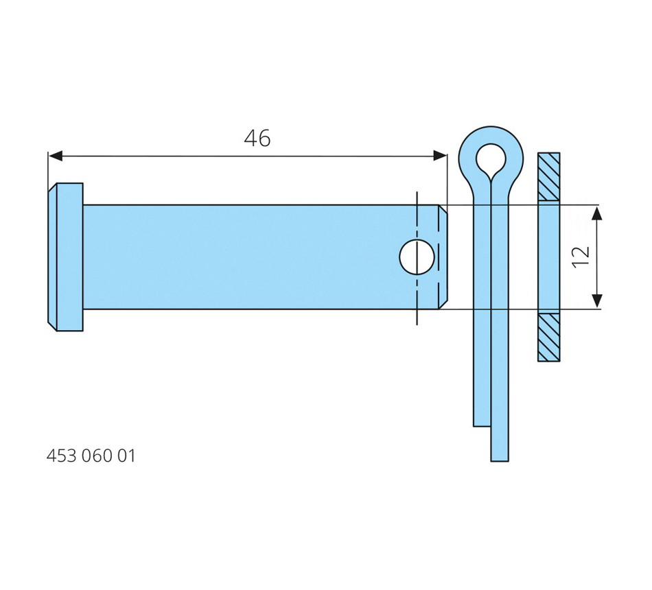 Boulon12x46mm, avec rondelle et goupille, 2 nécessaires pour un levier de fermeture