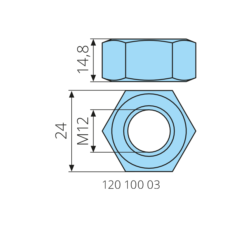 Écrou hexagonalM12, galvanisé, ISO 4032