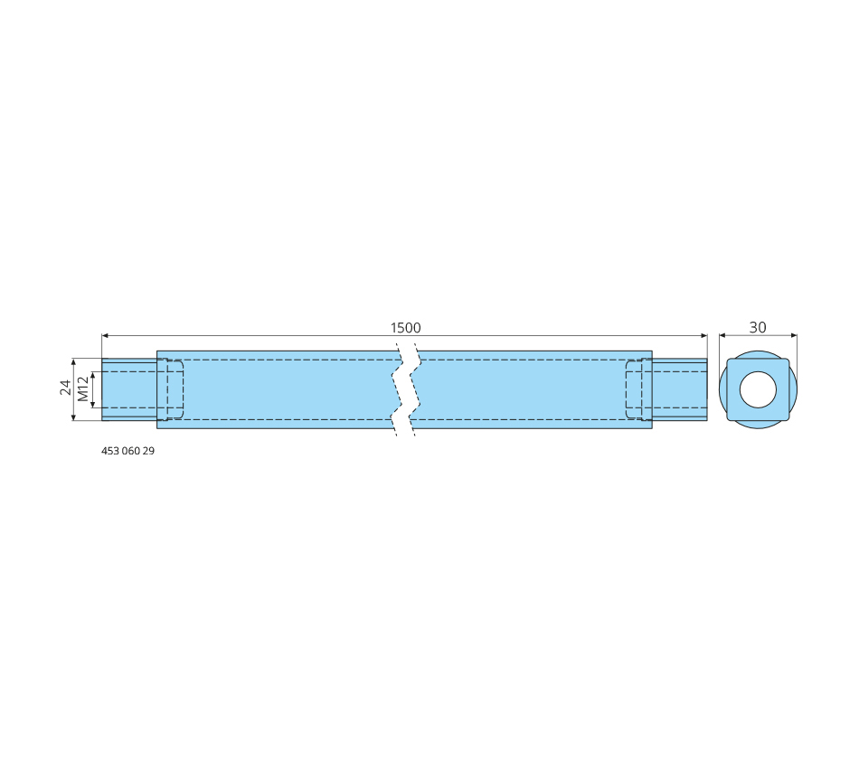 TubeL=1500mm, avec écrous carrés à souder M12 filetage à gauche & à droite