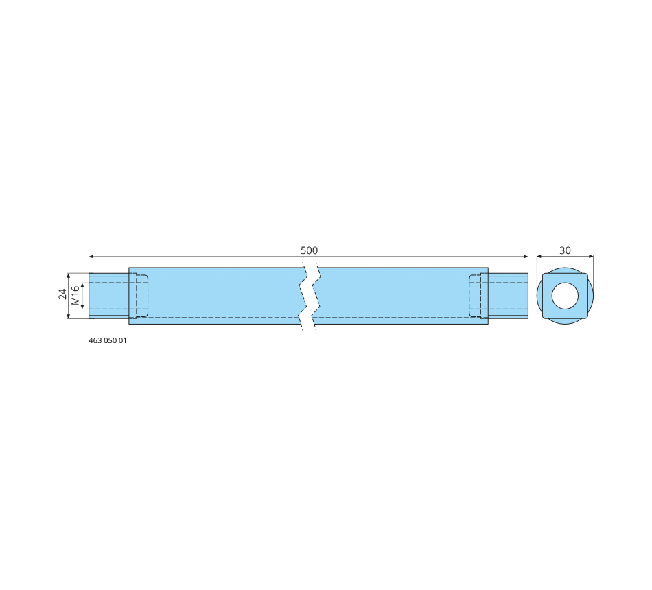 TubeL=500mm, avec écrous carrés à souder M16 filetage à gauche & à droite