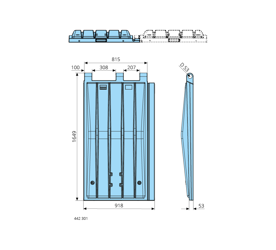 918x1649mm, left, plastic, divided/overlapping, black