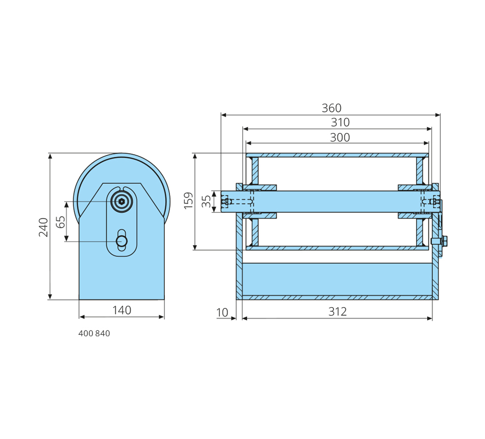 35-159-300/310mm, H=240mm, lubrication, brass bushing