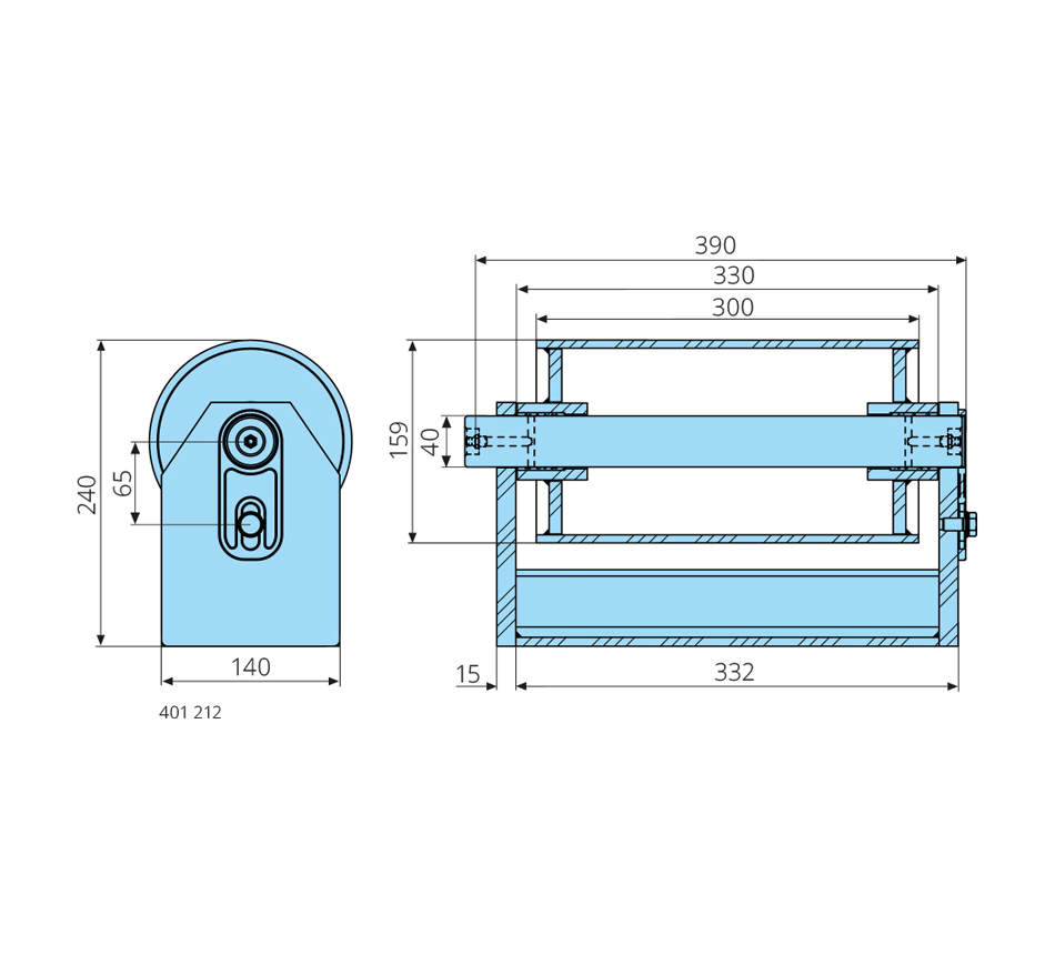40-159-300/330mm, H=240mm, lubrication, brass bushing