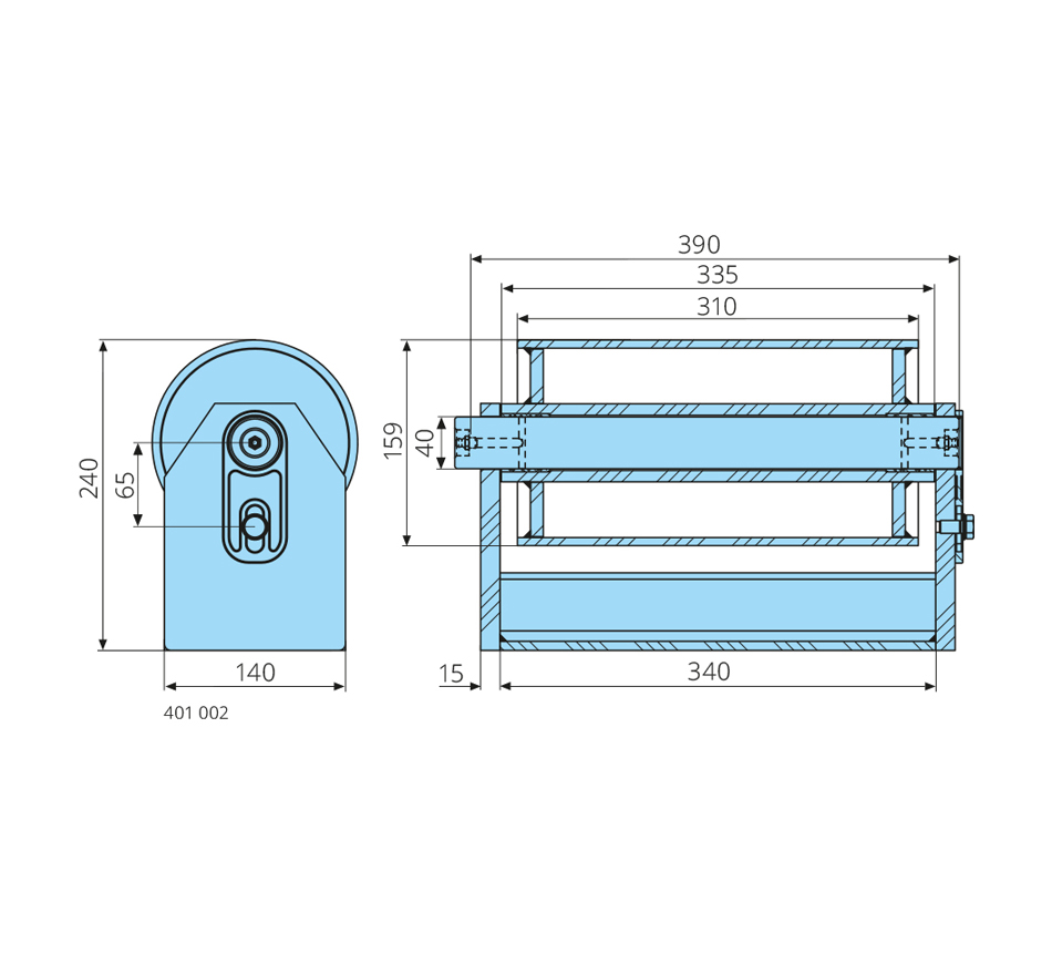 40-159-310/335mm, H=240mm, full sleeve tubing, lubrication, brass bushing