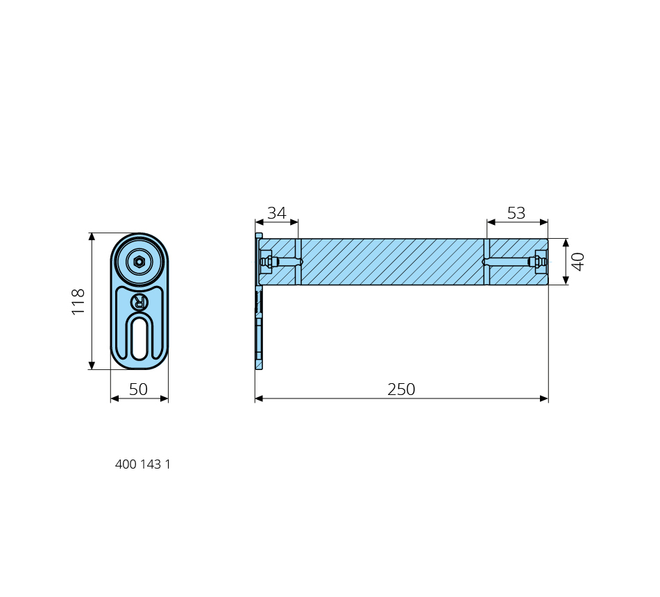 40x250mm, avec graissage & dispositif de sécurité, S355J2
