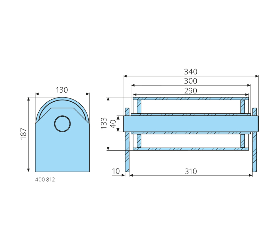 Rouleau acier avec bâti40-133-290/300mm, H=187mm, tube intérieur continu