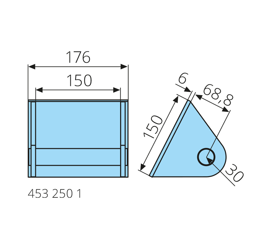 176x150x6mm, pour des mini bennes, bouchon S355J2, DIN 30735