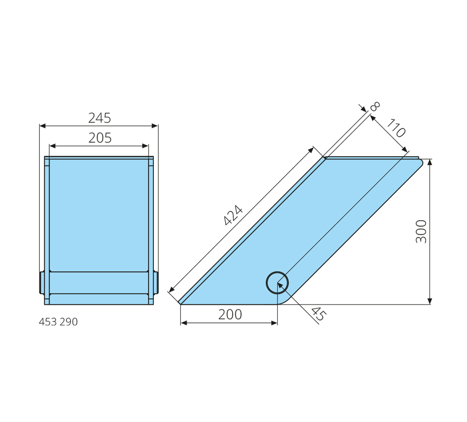 Sabot de basculement245x424x8mm, montage intérieur, boulon S355J2