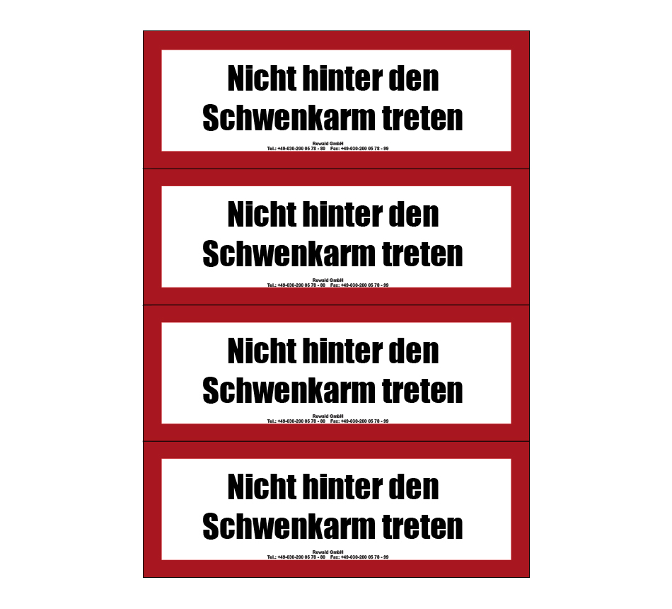 PVC sticker "Nicht hinter den Schwenkarm treten"210x75mm, 4 stickers/sheet