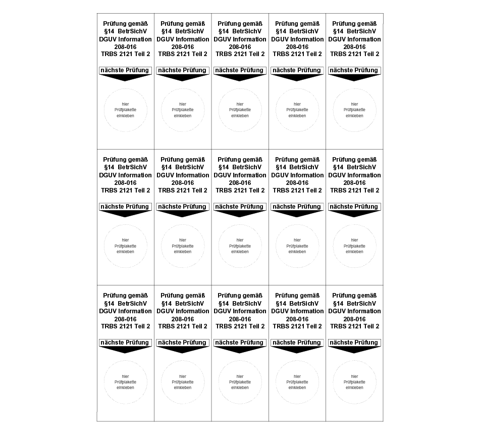 PVC sticker "Prüfung gemäß BetrSichV DGUV Information 208-016"40x95mm, 15 stickers/sheet