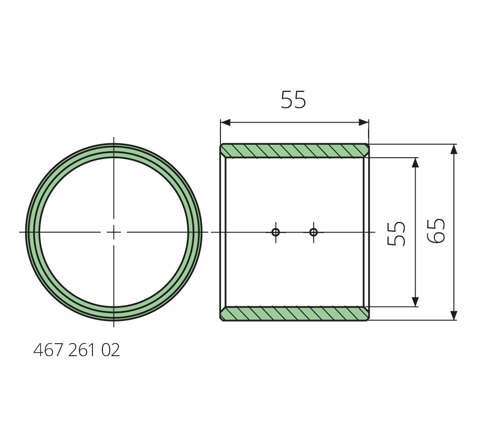 Bushing55-65-55mm, X39CrMo17-1, hardened, type PAAL