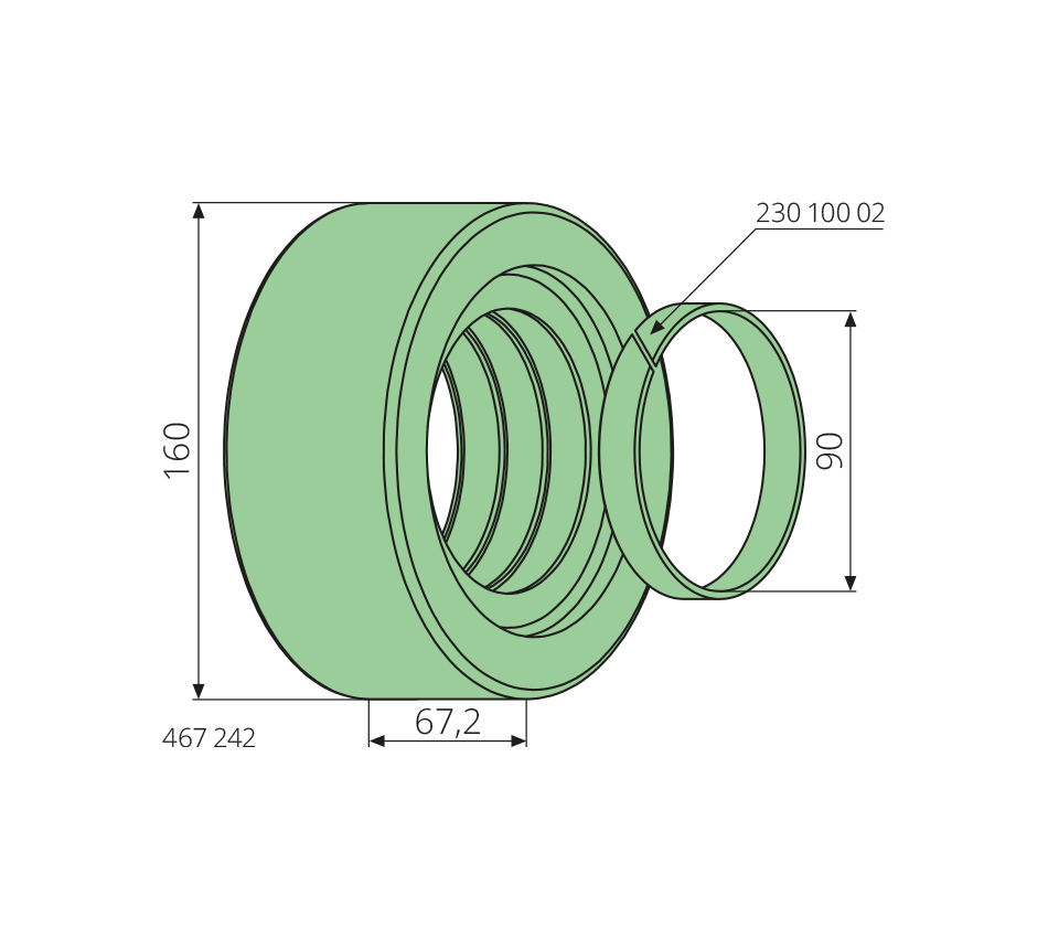 90-160-67,2mm, 42CrMo4, with 3 rod guide rings, hardend, type PAAL
