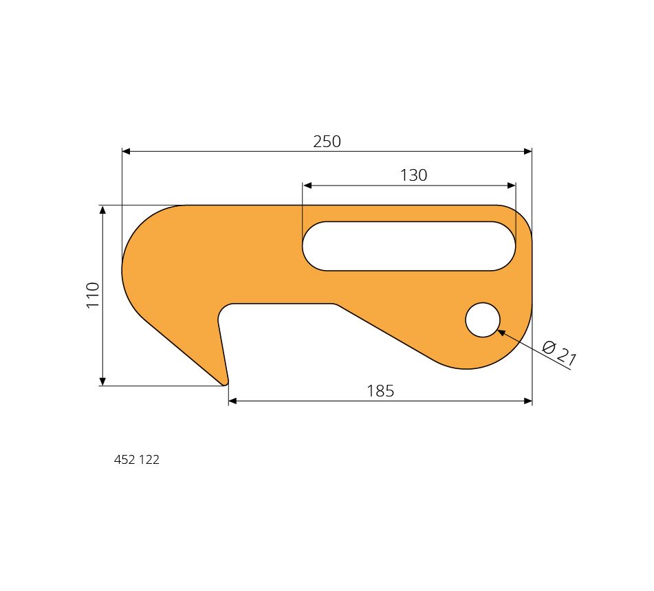 d=21mm, L=250mm, t=12mm, S235J2, Typ AJK
